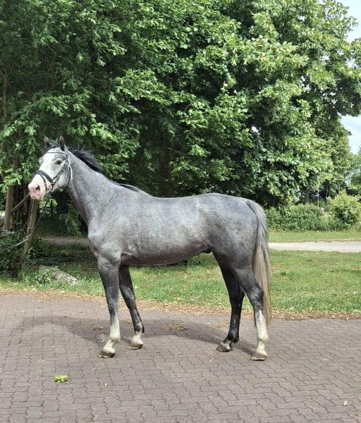 **Sales Advertisement: Hanoverian Gelding** For sale is a talented Hanoverian gelding, born in 2020. This elegant gray stands at 162 cm and impresses with his appealing appearance as well as his friendly nature. He shows great potential in jumping and is suitable for both the ambitious rider and the experienced athlete. Due to his level of training, he is not suitable for beginners or weaker riders. He demonstrates talent and ability when free jumping. He has also completed smaller jumps under saddle. With a little patience, you have a great young horse to have fun with. If you are interested or have any further questions, please feel free to contact me at 01711928847. We kindly ask you to refrain from messages via Ehorses, as we are only sporadically active here.