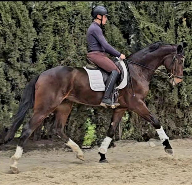 Excellent opportunity to acquire a magnificent horse! We are offering a beautiful Hanoverian gelding for sale, a distinguished breed with an excellent pedigree. Born in 2020, this gelding stands at a remarkable height of 16.1 hh. He has a rich dark bay coat, combining beauty and elegance with every movement. Specialized in dressage, he has great potential to progress through the levels and refine his skills in this discipline. His calm temperament and good nature make him suitable for both experienced riders and those just starting out in dressage. Don’t miss the chance to own a horse of exceptional quality. For more information and to arrange a visit, please do not hesitate to contact us.