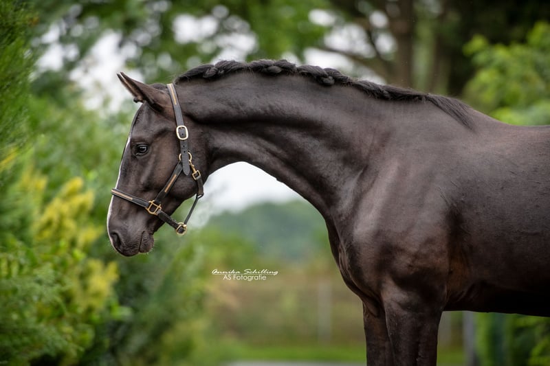 Escaniro, bei mir geboren und aufgewachsen, war er von Anfang an ein kleiner Charmeur. Dieses Pferd wird nur in ein absolutes Traumzuhause verkauft! Keine Eile, mehrfaches ausprobieren erwünscht! Er ist von Kindern zu händeln, lässt sich ganz leicht ausbilden, hat ein riesengroßes Herz und unglaublich viel Vertrauen zum Menschen. Er kann alles mögliche, ist aber trotzdem immer schonend geritten worden und hat auch immer mal wieder Pause auf der Weide machen dürfen. Er ist 4-jährig DRP-A platziert, da ich keine Turnierreiterin bin ist er nur zweimal auf dem Turnier gewesen, das hat er, wie alles andere auch super gut gemeistert, obwohl er gerade erst angeritten war. Er war mit mir auf Messen, Shows, am Strand, etc. Ausflüge kennt er zur Genüge. Er ist nicht nur in der Dressur zuhause, sondern kann Freiarbeit, Halsringreiten, verschiedene Zirkuslektionen, er läuft einem auf dem Hof hinterher, geht auch mit Kindern ins Gelände, kennt Straßenverkehr, Trecker & Co. Einen kleinen Parcours springt er problemlos, sogar auf dem Geländeplatz war er bereits, wo er auch alle Hindernisse ohne mit der Wimper zu zucken überwunden hat. Er lässt wirklich keine Wünsche offen und ist für sein Alter wahnsinnig ruhig und entspannt. Trotzdem ist er beim Reiten nicht faul, sondern hat auch hier ein sehr angenehmes Temperament. Bocken, steigen, oder sonstige Unarten kennt er absolut gar nicht. Er ist robust im Offenstall aufgewachsen und kennt Herdenhaltung mit anderen Wallachen. Auch aktuell und schon sein ganzes Leben steht er Sommer, wie Winter draußen. Er hat bereits Röntgenbilder ohne Befunde inklusive Rücken vorliegen. Ich wünsche mir ein absolutes Traumzuhause für ihn. Er ist ein ganz besonderes Pferd für mich, aber ich kann sie leider nicht alle behalten. Ich bin Pferdewirtschaftsmeisterin SP Reiten, wenn Sie sich für meine Arbeit interessieren -> hello_horses_official_ auf Instagram.