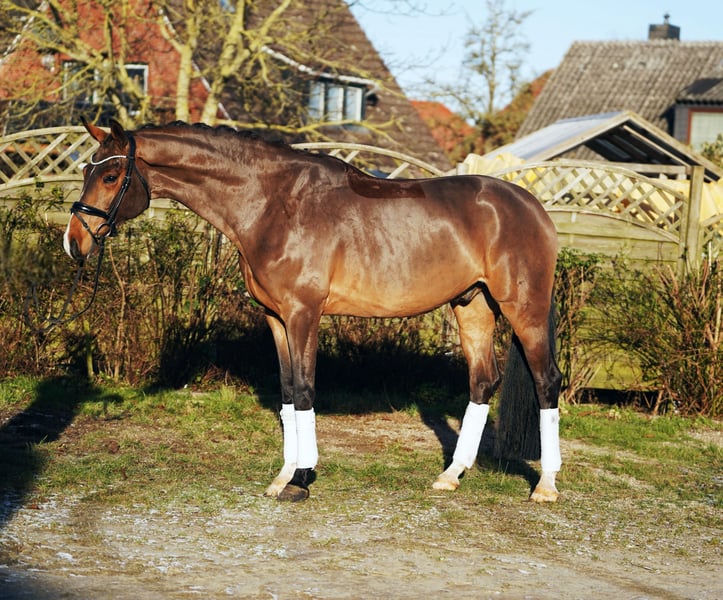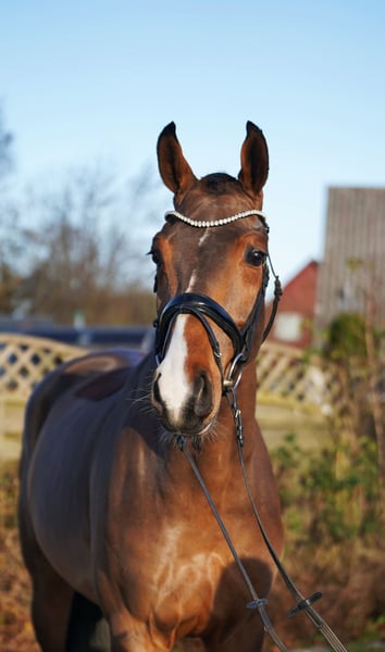 A typy son of Valdiviani. Vio is well-trained, light in the hand, and brings great joy to his rider every day. He is confidently competing at a Prix St. Georges level, already performs traversals, and we have started working on flying changes. He scored an 8.4 in Dressage Horse Class A, securing the win. A very typy horse that presents a beautiful picture both in the stable and under saddle. With us, he has proven to be well-behaved and uncomplicated both in handling and in the herd. No emails, only phone calls. Price plus VAT. Information without guarantee.