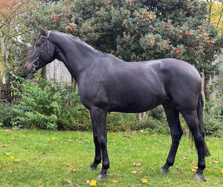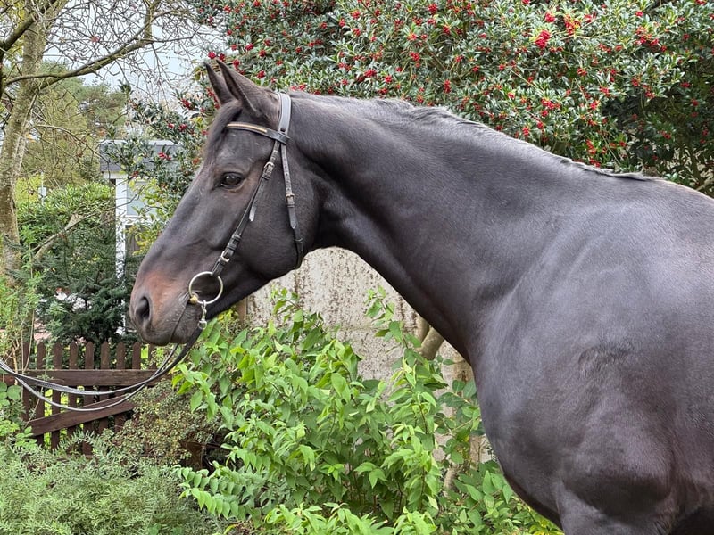 A 5-year-old black gelding in stallion type, in XL size, easy to ride and eager to work, with an excellent movement. The gelding has already established a solid foundation for further training. His pedigree (sire by Fürstenball) indicates a promising future in the grand prix arena. Video and additional information available by phone! Price reflects quality.