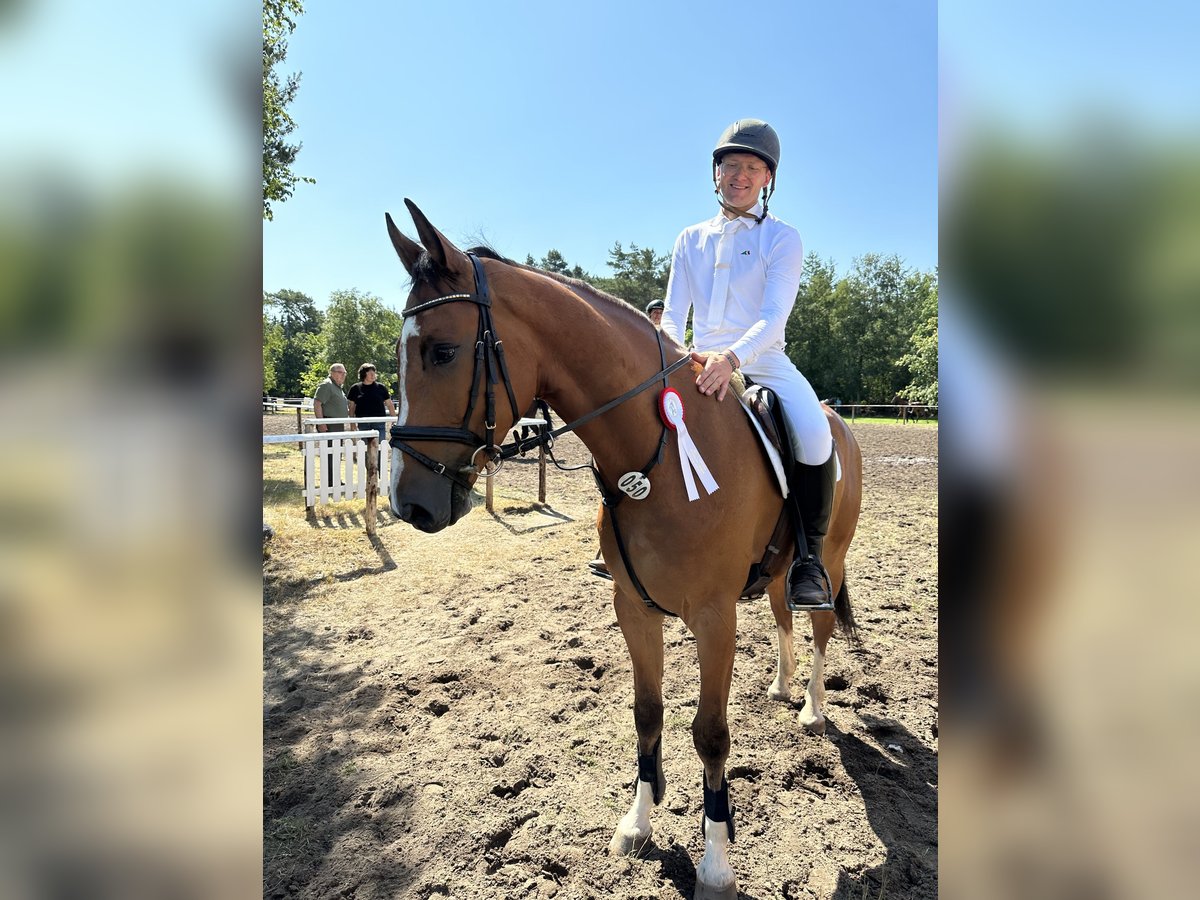 Zum Verkauf steht ein 7-jähriger, selbstgezogener Wallach, der durch seine Rittigkeit, seine Einstellung und seine Unkompliziertheit überzeugt. Er konnte bereits mehrfach in Springpferdeprüfungen der Klassen A und L platziert werden und zeigt sich dabei stets motiviert und leistungsbereit. Auch im täglichen Training ist er angenehm zu reiten, fein an den Hilfen und vermittelt seinem Reiter ein sehr gutes Reitgefühl. Er ist Dressurmäßig sehr weit ausgebildet, geht sehr gute Wechsel, Traversalen und sogar Halbetritte. Gern können Sie sich ein Bild von unserer täglichen Arbeit mit den Pferden bei Instagram machen, unter Sportpferde_Gerdes finden sie uns. Besonders hervorzuheben ist sein ausgeglichener Charakter: Er ist brav im Umgang, absolut frei von Unarten und zeigt sich sowohl im täglichen Handling als auch unter dem Sattel stets zuverlässig und unkompliziert. Der Wallach ist gesund, wurde schonend ausgebildet und kennt eine vielseitige Arbeit (Gelände, Außenplatz, Halle) Damit eignet er sich sowohl für ambitionierte Freizeitreiter als auch für Reiter mit Turnierambitionen. Ein TÜV ohne Befunde liegt vor. Ein tolles Pferd für alle, die einen ehrlichen Partner mit Qualität und gutem Charakter suchen.