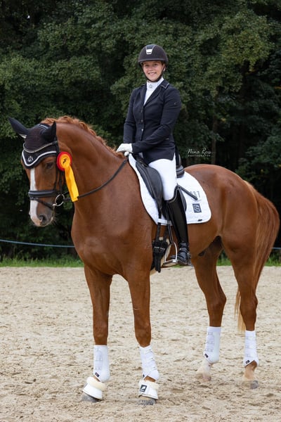 **Sales Advertisement: Beautiful Hanoverian Gelding** For sale is an impressive Hanoverian gelding, born in 2019. With his striking chestnut color and a height of 173 cm, he is not only a real eye-catcher but also a talented sport partner. This young gelding shows great potential in dressage and has already achieved first victories in A and L levels. His rideability and positive traits make him an ideal horse for ambitious riders looking for a reliable and eager-to-learn partner. He is well-mannered, well-trained, and remains calm even in the field. The gelding is regularly vaccinated and dewormed. If you are looking for a promising dressage horse that can shine both in training and at competitions, then this Hanoverian is just right for you! If you have any questions or are interested, please feel free to contact me. Come visit us and get to know this wonderful gelding in person!