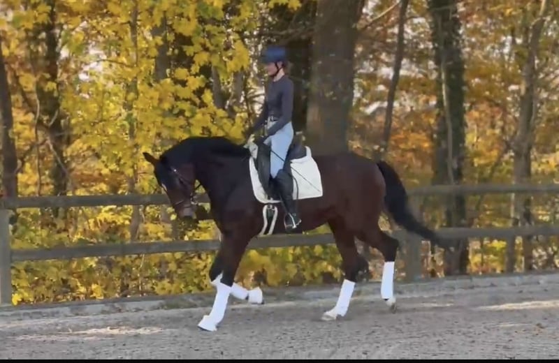 On behalf of A very handsome 7-year-old gelding by Fürst Belissaro A charming fellow with a head that catches everyone's eye. Absolutely stylish and with a wonderfully sweet temperament. He has very expressive gaits and offers an excellent sense of rhythm and rideability. Very comfortable in the saddle, he allows the rider to sit effortlessly and is very easy to handle. Overall, a well-sized, manageable horse that brings daily joy. He is herd-friendly and uncomplicated. The video is current, dated November 7, 2025, and features a young girl introducing him. Location: Soest For inquiries, please call 017661987617