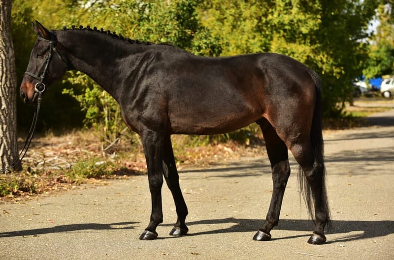 Warmblood gelding with excellent pedigree! Kazar stands at 170 cm, was approximately 16.1 hh, was born in 2017 and was backed at the age of three. He is now very confident and suitable for both teenagers and children who enjoy jumping. He is very easy to ride and has already competed in show jumping events, successfully navigating courses up to 130 cm. Kazar lives in an open stable and is familiar with mixed herds. He also rides well alone in the field and is accustomed to handling with children. He is straightforward and not dominant in his behavior. His hooves are of very good quality, which is why he is currently unshod. Kazar is also familiar with dogs, cats, and other animals. Healthy, veterinary checked, free of vices! Transport is no problem, including via www.horsetrans.hu. Price: €11,500 including transport.