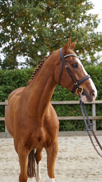 For sale: this stylish eight-year-old gelding – perfect for ambitious show jumpers! This charming chestnut gelding impresses with his friendly nature and his motivated attitude every day. Ginger is very well-schooled in dressage, and also practical and straightforward over fences. Although he has limited competition experience, he has shown great talent up to classes of 1.20 m (M*). An ideal partner would be a rider who can grow with him, as Ginger will be the perfect match even for more challenging tasks! A recent veterinary examination is available. If you're interested or would like more information and videos, please feel free to contact me at 0172 3241632.