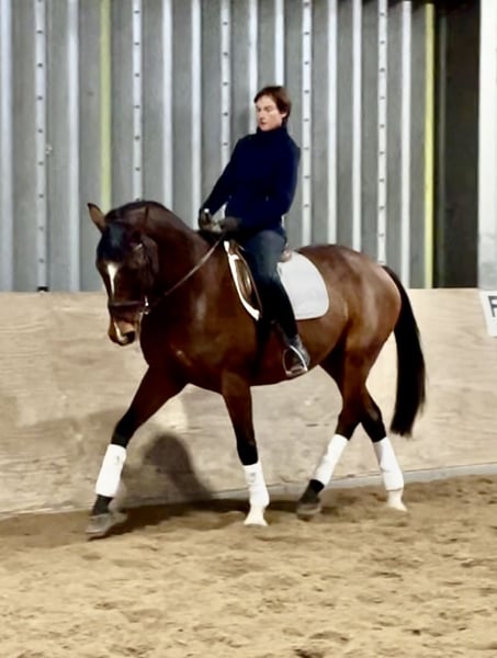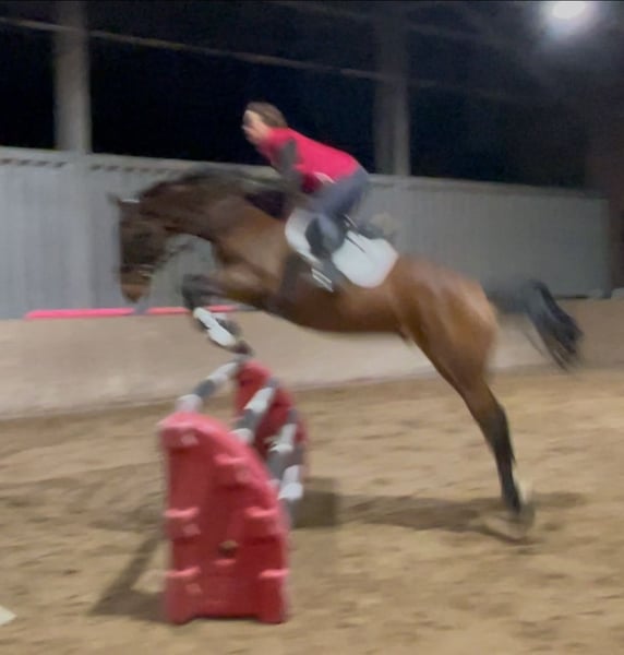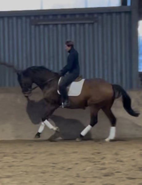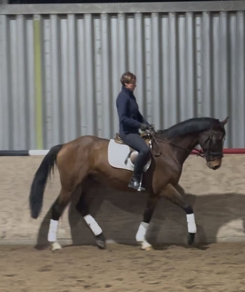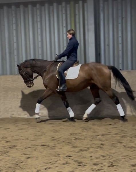 Dieser Hannoveraner Wallach mit der interessanten Abstammung Mighty Magic, (Vatervater: Mytens xx) (Muttervater: Forrest xx) ist ein sehr gelehriges, leistungsbereites Pferd. Noch wenig auf Turnier vorgestellt ist er aber sofort einsatzbereit für Springprüfungen der Klasse A aufwärts. Gibt dem Reiter immer ein gutes Gefühl am Sprung, kann alle Distanzen gut regeln mit angenehmen Zug nach vorn. Auch für den Ponyumsteiger gut geeignet. Wer in der Vielseitigkeit ambitionierter unterwegs ist, hat hier ein Pferd das von Einstellung sowie Galoppier- und Springvermögen erstmal nicht begrenzt ist. Er beherrscht erste L-Lektionen in der Dressur, ist angenehm zu sitzen und auch in den Seitengängen sehr gelehrig. Mit einer aktiven Hinterhand ist er auch in der Lage gut Last aufzunehmen und wird in der weiteren Ausbildung auch in der Dressur dem Reiter viel Freude bereiten. Im Gelände ist er gehfreudig und absolut unerschrocken. Für weitere Rückfragen/Videos bitte Kontakt unter 0179 2969269.