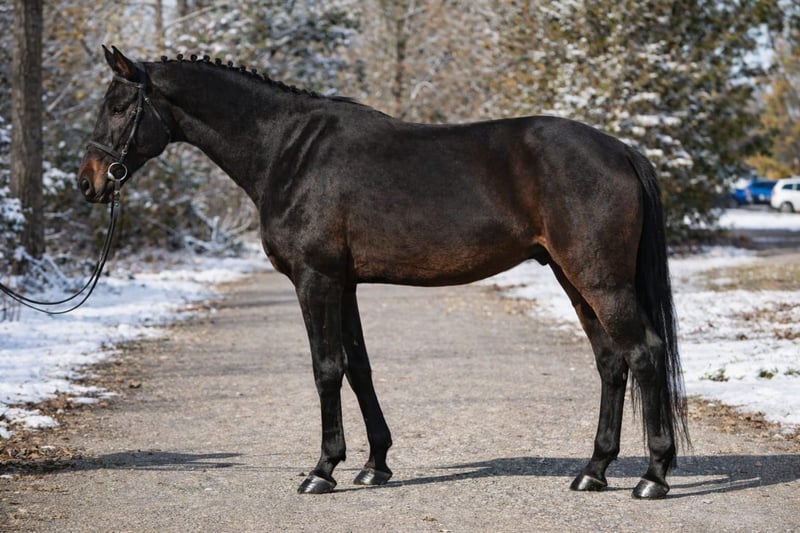 Warmblut gelding with excellent pedigree! Kazar stands at 1.70 meters, was 16.1 hands, was born in 2017 and was backed at age 3. He is now very confident and suitable for teenagers and children who enjoy jumping. He rides very easily and has already competed in show jumping events. Courses up to 130 cm are no problem! Kazar lives in a paddock with other horses, is familiar with mixed herds, and also goes alone into the terrain. He is accustomed to handling with children. He is uncomplicated and not dominant in his behavior. His hooves are of very good quality, so he is currently unshod. Kazar is also familiar with dogs, cats, and other animals. Healthy, veterinary checked, with no vices! Videos available gladly, easiest via WhatsApp at +36 30 892 25 57. Transport across Europe or to other continents (America, etc.) is no problem for us! Price includes transport within 1500 km.