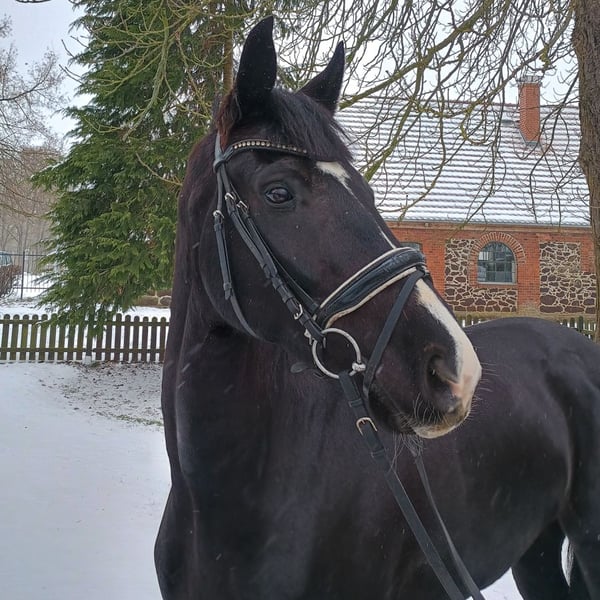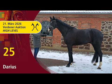 Als Pferd für die „Drei-Sterne-Tour“ bewirbt sich Darius. Die entsprechenden Ansätze sind in den Lektionen aller Grundgangarten erkennbar, auch wenn die Ausbildung noch nicht abgeschlossen ist. Gelehrig ist Darius allemal, und so lohnt es sich, die entsprechende Zeit in diesen Rohdiamanten zu investieren. Das Zuschauen macht schon jetzt Spaß, und das Reiterherz freut sich auf die zukünftige Reife dieses Dunkelbraunen in der höheren Versammlung. De Niro als Vater gibt das Potenzial für eben diesen Dressursport vor; von ihm hat Darius wohl auch das aktive, tragende Hinterbein geerbt. Immer auf den Reiter fokussiert, zeigt der Wallach in der Grundarbeit losgelassene Touren in der gewünschten Silhouette und in angenehmer Leichtigkeit. Dies resultiert aus einem korrekt angelegten Körperbau mit schöner Oberhalsbetonung und grundsätzlich guter Bemuskelung. Die körperliche Machart von Darius wird sehr unterschiedlichen Reitern erlauben, mit ihm ein passendes, optisch harmonierendes Team darzustellen. Sportname: Darius 595 Sporterfolge: DRE (Dressur) Klasse M1 (Dre M*): 1/w DPF (Dressurpferdeprüfung) Klasse A (Dpf A): 1/4 Klasse L (Dpf L): 2/3 1. Generation Sportpferde Dressur: De Vita/DE Vita 8 v. De Niro (DRE: M** mit Lana Marie Külper); Delgado 80 v. De Niro (DRE: M* mit Christina Thieme). 3. Generation Sportpferde Dressur: StPr LS-Dr Rosarie/Rosaria 11 v. Rosario (DRE: S* mit Lena Berwe,Championat f. Reitpferde 2008,VA 2008: 52.000 €). Bes. Prämientöchter: StPr Alkmene/Alkmene 13 v. Argument. 4. Generation Sportpferde Dressur: Wellendorff 3 v. Werther (DRE: S** mit Astrid Helene Lundgren). Auktionspferde: Waysider v. Wonderland (VA 2004); Westlife 4 v. Wonderland (VA 2002); Windsbraut 32 v. Winterwald (FoVA 1993); Winnie/Whispering Woman v. Winterwald (FoVA 1991); Wildrose 54 v. Winterwald (VA 1993). 5. Generation Sportpferde Springen: Tico 2 v. Trajan (SPR: M mit Bergmann,Jürgen-Albert). Aufbauprüfungen Springen: Chokky v. Capitol II (SPR: L); NAPOLEON 75 v. Nurmi (SPR: L). Auktionspferde: Nigtingale v. Novize (VA 1988); Gross Ehlen v. Greenhorn (VA 1986). Mutter: Cortina H. ZL: 4/4 Großmutter: Scarlett Prämierung: 1xIa. ZL: 4/4 ZSP: Stationsprüfung Reitpferd - Trab 6,75 Galopp 7,25 Schritt 6,50 ø Durchschnitt Rittigkeit 7,33 / ø Durchschnitt Springen 7,00