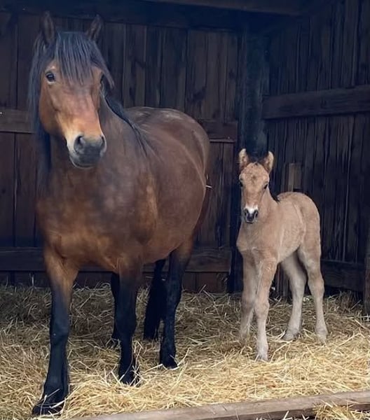 M: by Croila of Croft Mousedun V: Balmoral Mroven (Balmoral breeding of the Queen) Yellow-Bay Dun I am selling a large-framed yearling with an expected height of 1.46m - 1.48m, but likely a bit more, in the beautiful color Yellow-Bay Dun, homozygous for the Dun gene (but not yet tested). Offspring from this line are very strong movers. Sale as a gelding is also possible with cost coverage. Transport companies can be arranged. Possibly, there is also a Yellow-Bay Dun yearling filly available, dam: Artemis de Lhermet, sire: Valeron Ben Bracken. Large, strong offspring of the legendary Balmoral Mroven from the breeding of the Queen. For more information, please call 0173/ 9 312 312.
