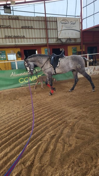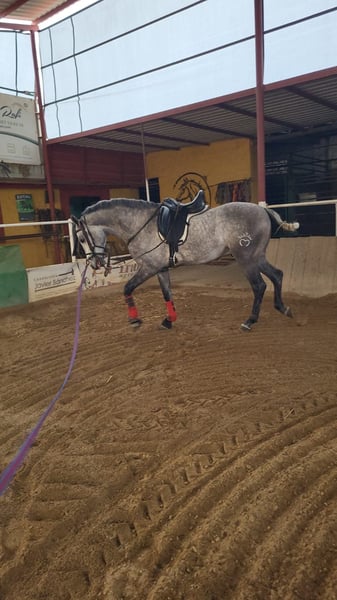 For sale is a stunning Hispano-Arab stallion from the year 2021. With a height of approximately 158 cm and a striking gray coat, he attracts all attention. This talented stallion has already been started in Doma Vaquera and shows great potential in this discipline. His movements are smooth and elegant, making him an ideal partner for ambitious riders. He is very well-behaved both in handling and training, displaying a friendly and open personality. The stallion is suitable for both experienced riders and those who want to get into Doma Vaquera. If you are interested or have further questions, please feel free to contact me. Visit us and see for yourself this extraordinary horse! The horse is currently located in Spain. If desired, we would be happy to arrange a viewing appointment. Furthermore, he can also be gelded upon request without any problems.