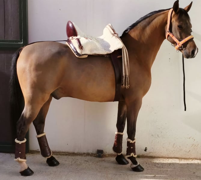⚜️For Sale⚜️🔝🔝🔝 💎 "Hispano Árabe" Gelding by Capricho 💎 Excellent 50% Hispano-Arabian gelding with a chestnut coat, gelded, well-built, healthy, and very well cared for. A true beauty at 10 years old, standing 1.58 m at the withers. Unique in his morphology and coat, as well as having an exemplary temperament. Used to all kinds of situations and bombproof. Any tests you wish to perform are welcome. Good for everything and with a big heart, serious and well-trained in walk, trot, canter, three-beat supports, backing up, half-passes, flying changes, direct and indirect pirouettes, canter pirouettes, shoulder-in, leg-yield to the wall, flying change... A quite refined horse with spectacular gait, does not rear or heat up with other horses. A gentle horse suitable for any enthusiast or for someone looking for a versatile horse for leisure, fairs, pilgrimages, riding out, trail riding, work riding, schooling... and to enjoy a good, reliable, and versatile horse for classical and vaquero riding. 👉 More information available privately. 📍 Location: Madrid, Spain 🇪🇸 📹 Videos available