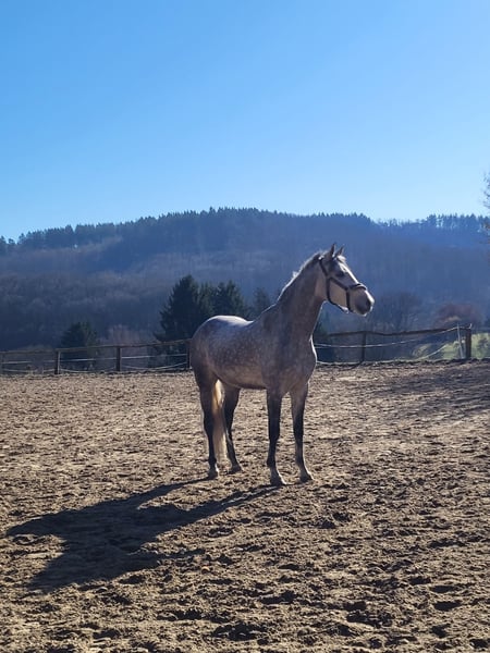 Dieser wunderschöne Wallach ist fast 5 Jahre alt, ca 154 cm groß und angeritten. Er ist herdenverträglich und schmied- und verladefromm und zurzeit barhufer. Er ist etwas sensibel und unsicher, versucht aber alles richtig zu machen. Da er aber noch jung ist, würde ich mir einen erfahrenen Besitzer wünschen, der ihn in seiner Ausbildung weiter fördern kann. Unter dem Sattel ist er brav. Er ist ab jetzt 2-3 mal die Woche im Beritt. Ich habe ihn vor 2 Monaten erst gekauft und muss ihn leider aufgrund einer Schwangerschaft schweren Herzens wieder abgeben. Sattel kann gerne ebenfalls abgekauft werden. Dieser wurde vor 1 1/2 Monaten erst erworben und angepasst. Decken und sonstiges Zubehör kann auch gerne abgekauft werden. Eine klinische aku wurde beim Kauf gemacht und kann gerne eingesehen werden. Ein Reitvideo kann bei ernsthaftem Interesse gerne geschickt werden.