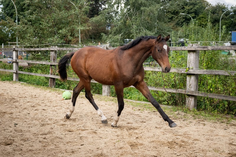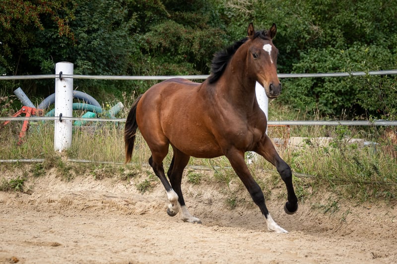 Qu Vadis ist ein vielversprechender ,menschenbezogener Junghengst mit hervorragendem Charakter. Er überzeugt durch seine Freundlichkeit, Ruhe und Gelassenheit- beste Voraussetzungen, um später ein zuverlässiges Familien - oder Freizeitpferd zu werden. Sein Vater ist Quell Mexx, mütterlicherseits stammt er aus einer Lucky Champ Stute, Stamm 4815. Er ist mit 3 guten GGA ausgestattet und wächst zu Zeit in einer Herde mit Junghengsten und Wallachen auf und erhält so eine natürliche und pferdegerechte Erziehung. Halfter,Putzen und den Hufschmied kennt er bereits und zeigt sich stets brav im Umgang