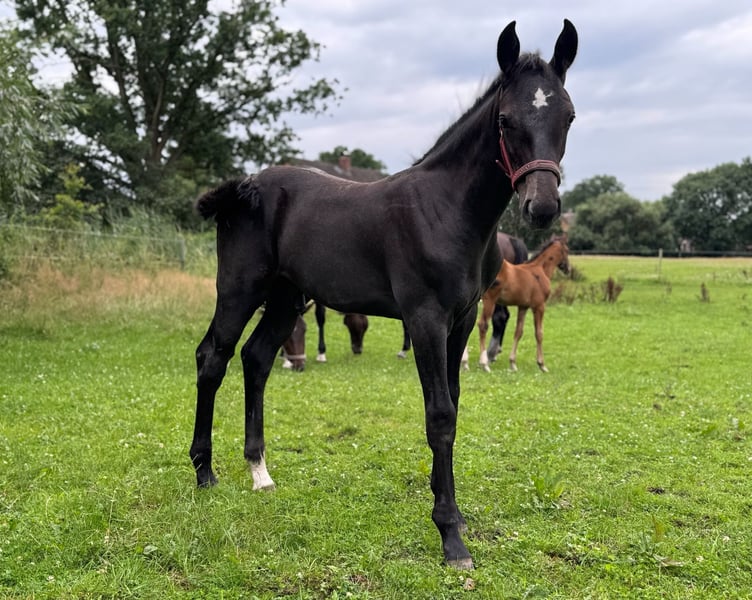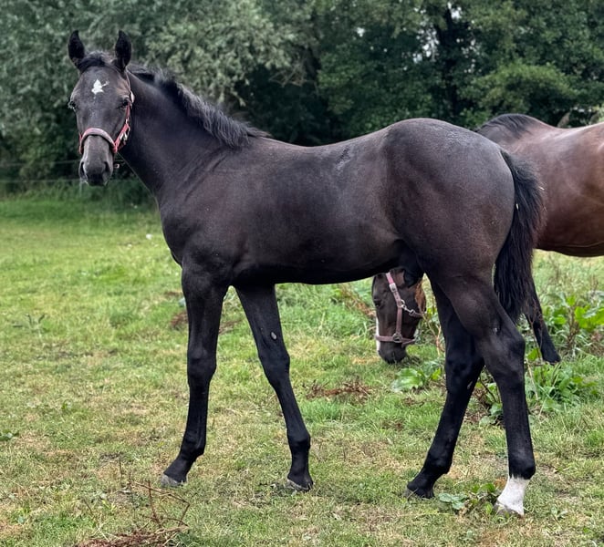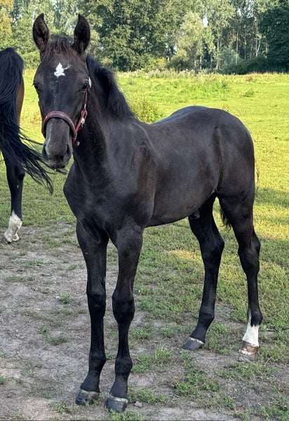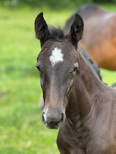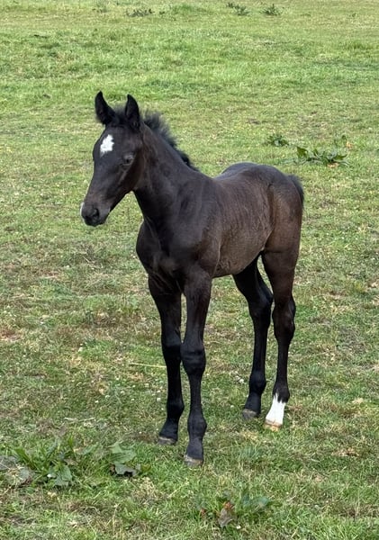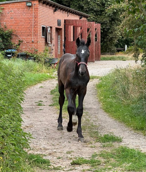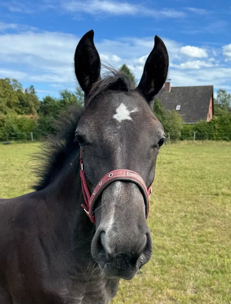 With Duncan Hero, we present a correct, people-oriented, and typy colt in a modern appearance. He impresses with his long-legged, correct conformation and stallion-typical head/neck area. Duncan presents himself with a correct character, friendly and self-confident. A foal with a great sporting future. His 2-year-old full sister is in our possession and can also be viewed upon request. Mother Quira is a Holsteiner district premium mare by Quintero / Ramirado / Acord II and comes from the successful Holsteiner line 474 a. Her sister Farmers Girl was already successful at the international 1.50m level at the age of 9 with Frank Schuttert (NL). Countless licensed stallions descend from this line, such as Bubalu VDL, Calato, Calderon, Fernando, Great Pleasure, Nimrod B, Q-Verdi, Quicktime, or Vingino. In sports, legendary names are also represented, such as Brilliante (vice European champion with Inken Johannsen), Bubalu VDL (silver medal team show jumping Olympic Games London 2012), or the stamp stallion Q-Verdi (silver medal team show jumping Olympic Games London 2012 / world and European championship gold medalist). Furthermore, there are numerous successful show jumpers in the highest classes. Additionally, there are many winning mares at Holsteiner elite mare shows. A secured performance line in the areas of sport and breeding! Quira's first colt from 2014 by Mylord Carthago was successfully auctioned at the Quality Auction in Zangersheide and was already top placed internationally at the age of 6. Her offspring by Taloubet Z has also gained initial experiences in the course and has already been able to place. Due to her lineage and outstanding progeny, Quira was not used in sports. His father Diacontinus (Diarado / Contendro) needs no introduction. Countless offspring are regularly seen in top sports, at the Bundeschampionat, and at the World Championships for young horses. Currently, 28 licensed stallions are among his descendants. For years, he has been leading the FN breeding value estimation for young horse tests.
