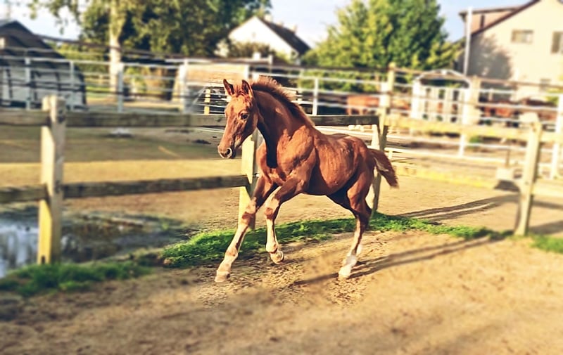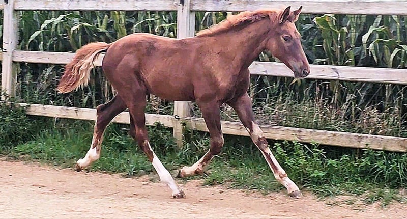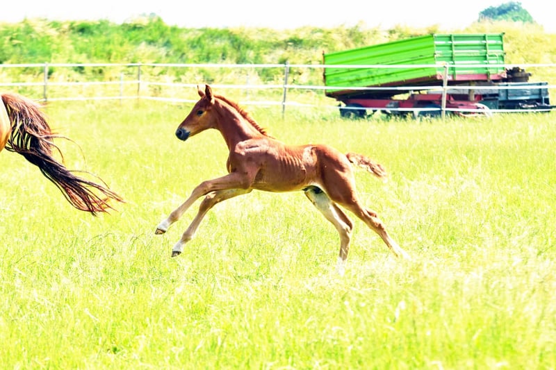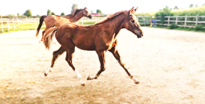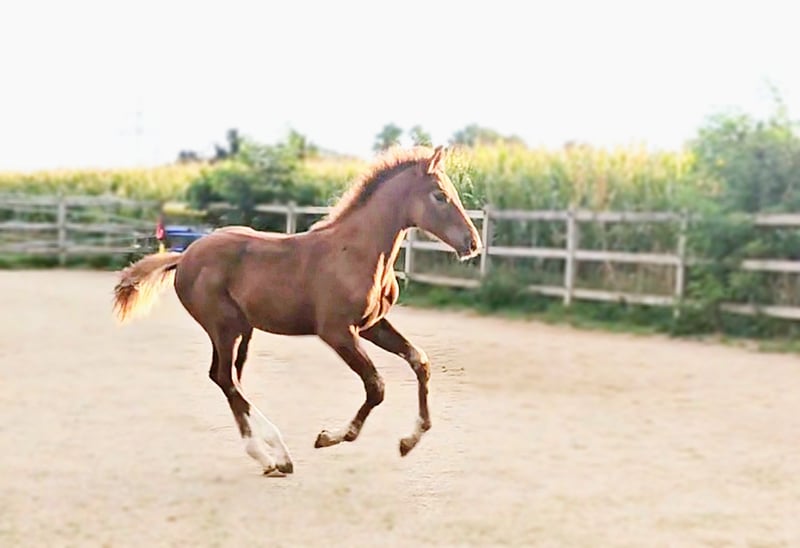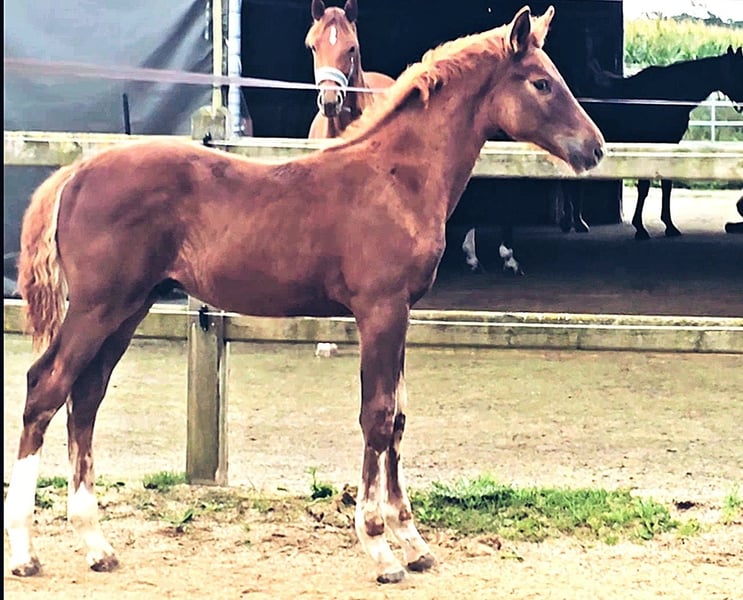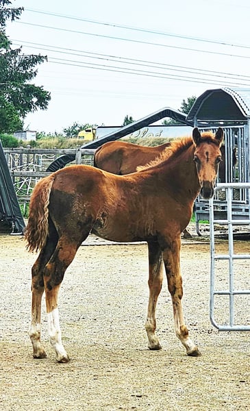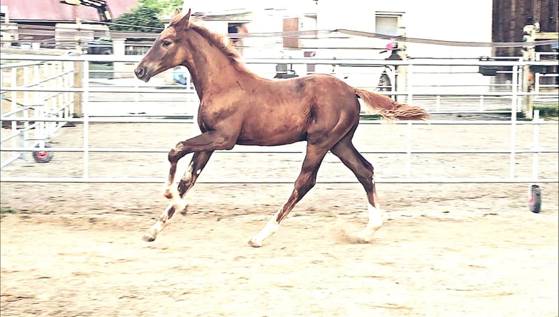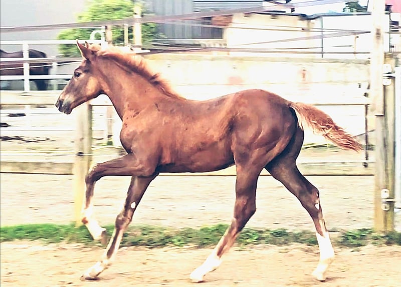 Colt foal born on May 21, 2025 SAN TO ALATI (SECRET) × TOPAS × TOTILAS Not only is the genetics of this foal more than promising, but the sturdy little guy is already proving it. Smooth, harmonious movements full of elasticity and excellent dynamics give a glimpse of his further development. He is growing up in a mixed-age herd and enjoys the advantages of good upbringing from the start, as well as close contact with humans. Very curious, open-minded, and brave, he explores the big wide world. Absolutely clear-headed and fearless, he is making his first connections with other horses. He has an incredible amount of fun moving around and discovering himself and his abilities. His father, San To Alati, was initially the reserve champion at the 14-day test in Adelheidsdorf 2021 and the winner of the sport test in Münster Handorf 2022 with a score of 9.12. In 2022, he became the Hanoverian Champion with a score of 9.12. He reached the grand final of the World Championship for young horses in 2023 and 2024 and was victorious in dressage horse tests up to class M. San To Alati's father is none other than Secret. His offspring are already making history today: countless licensed stallions, state and federal champions, as well as internationally successful young horses testify to his breeding power. The riding qualities of his daughters and sons set new standards and dominate the elite of the competition scene. The secret to his success lies in his outstanding lineage. Through his father Sezuan, the celebrated triple world champion of young dressage horses, Secret carries the best bloodlines. The combination with proven sires Rotspon, Argentan, Woermann, and Lugano in the further generations of his pedigree makes Secret a complete package. We wish for this sporty, modern, beautiful boy the absolute best home with family connection and later sporting support.