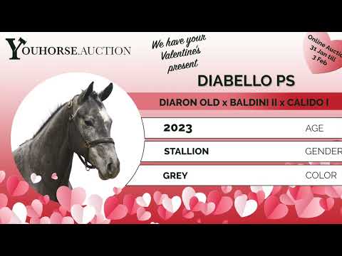 https://youhorse.auction/en/auction/Diabello-PS-DIARON-x-BALDINI-II Exceptionally bred, light-footed, promising athlete with top-notch manner. This handsome grey immediately stands out for his jumping style. He jumps very carefully, jumps back well from the fence, and demonstrates both good foreleg technique and strong hindquarters. Light-footed in his movements and beautifully built, he is a horse that shows quality and control over the jump. Besides being an interesting show jumper, he could also be very suitable as a hunter for the American market. Sire Diaron OLD (Diarado x Come On) competed internationally at the 1.50m level. He is known for transmitting technique, disposition, and quality over the jump. His offspring have produced several horses that compete at the 1.45–1.55m level, including Diarona PS (1.55m) and Diarouge Blue PS (1.50m). Damline The dam is C-Belladonna (Baldini II), a mare from an exceptionally strong sport lineage. She is the full sister of the legendary Belladonna, who competed internationally at the highest level (1.60m Grand Prix) under Meredith Michaels-Beerbaum. This direct damline has produced, among others: – Belladonna (Baldini II), international 1.60m Grand Prix – Coeur de Bella Donna (Cornet Obolensky), international up to 1.45m and approved by several studbooks – Ucalido NT (Udarco van Overis), international 1.40m – Several horses at the 1.30–1.45m level Further back in the lineage, we find an exceptional concentration of international show jumpers and approved stallions, including horses at the 1.40–1.60m level. A proven performance line in which sport, technique, and attitude have been ingrained for generations.
