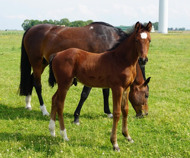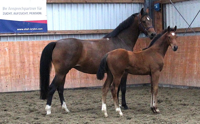 Authentic colt from a successful dam line for sale. Corsentos SKH was born on April 14, 2025, at Stall Krohn. His dam, “Leilani SKH” (Cornet Obolensky – Calato – Concerto II), was foaled in 2018 at Stall Krohn and has been used as a broodmare ever since. She has produced two foals to date. Corsentos SKH’s granddam, “Viola XI” (Calato – Concerto II – Joost), hails from the renowned Holsteiner Stamm 628B. Born in 2005 at Stall Krohn, she was used as a broodmare until 2024. She has produced nine foals so far, including: - “Quintino” by Quidam de Revel, born in 2011 – Approved in Zangersheide – Successful in show jumping competitions up to 145 cm - “Leilani SKH” by Cornet Obolensky, born in 2018 – Active as a broodmare at our stable Great-granddam “Lady Mobilcom” (Concerto II – Joost – Lago Maggiore) was foaled in 1996 in Hedwigenkoog by Otto-Boje Schoof. Lady Mobilcom was the winner of her mare performance test and confirmed this outstanding performance as vice-champion at the Elite Mare Show in Elmshorn and again as vice-champion at the European Mare Show in Brussels in 1999. She joined Stall Krohn in 2005. Special importance is attributed to her sire, “Concerto II,” by “Lady Mobilcom.” Born in 1992 (Contender – Ahorn Z – Wahnfried) and bred by Otto Peters, “Concerto II” sadly passed away after only five years, but not before passing on his exceptional qualities. Initially, his offspring were considered somewhat lacking in rideability due to their high energy and ambition in the jumping arena. However, this trait ultimately proved advantageous. He was only used at stud for three years before his death. His significant breeding value is reflected in the high caliber of his progeny, making him one of the most valuable sons of “Contender.” “Lady Mobilcom” produced ten foals, among them: - “Cabachon” by Casall, born in 2004 – In 2009, “Cabachon,” with Norwegian rider Stein Endresen, was a finalist at the World Championships for Young Jumping Horses in Lanaken, Belgium. He achieved further success in international competitions with Oleg Krasyuk, Ulrich Kirchhoff, and Katharina Offel. In 2013, he placed third in the Grand Prix of Rastede and continued his sporting career successfully in 2014 with young rider Mathis Schwentker. As a breeding stallion, “Cabachon” made a significant impact in Scandinavia, being the most-used jumping stallion in Sweden in 2010. He has passed on his qualities impressively to his offspring, such as “Camelot 143” (Cabachon – Baloubet du Rouet – Quilot Z), who won the Grand Prix of Riesenbeck in 2023. From the Holsteiner Stamm 628B, numerous international sport horses have emerged, including: - “Carino” (Ulrich Kirchhoff) - “Classic H” (Toni Haßmann) - “Alcazaro” (Jürgen Kurz) The Stamm has also produced several approved stallions, such as: - “Lavaletto” - “Romantiker” - “Broker I” The sire of “Corsentos SKH” is Casentos (Casall – Cardento – Quo Vados I).