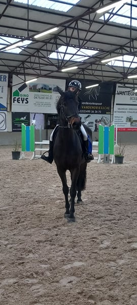 Due to my retirement from competitive riding, I am offering my beautiful 9-year-old Holsteiner mare. This mare not only has stunning looks but also real quality. She was trained at a young age in Germany and competed in classes at 130/140 cm, achieving results in the 120/125 cm range. Here in Belgium, she was shown in 90/100 cm classes, and I have now brought her up to 110 cm. She has also competed in M1/M2 dressage in Germany, where she truly shines in the discipline. In Belgium, she is currently competing in L1/L2 dressage. She is definitely a mare with potential up to 150 cm, given the right guidance. She is very curious about unfamiliar terrain but tries not to make any mistakes. She loads onto a truck very easily, both on a lorry and a trailer, although she is a bit nervous about the trailer and finds it a little more challenging. She is very well-behaved at the farrier, can be shod with or without shoes, and shows no fear of water—she has never been afraid of it. During grooming, she is very gentle and enjoys being brushed. She is also always very calm with the veterinarian and dentist. She loves being groomed and is very easy to handle in all respects. This mare is fully approved and comes with papers. She has already undergone all necessary veterinary, dental, and farrier care. I am giving her the loving forever home she deserves, so no traders or riding schools, please. Would you like to give this mare a chance? Send me a message on WhatsApp at 0470259592. Test rides are possible with a contribution.