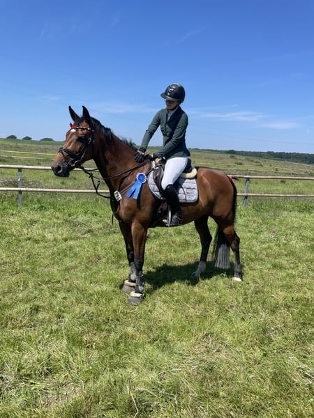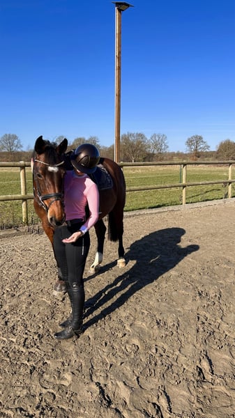 For sale is our talented and very affectionate show jumping mare with excellent pedigree, Stamm 1298 – Clarimo/Caretino/Cassini I. The mare has already competed successfully in class A jumping competitions and consistently strives to stay clear. In dressage work, she impresses with three good basic gaits. She has been trained up to level L and shows significant potential for further development. Beyond her sporting qualities, she is especially notable for her friendly and human-oriented character. She is very well-behaved, calm, and relaxed in handling. She enjoys attention, loves being pampered, and is always enthusiastic about relaxed rides in the countryside. She is also very well-behaved when it comes to the farrier and loading onto the trailer. Thanks to her rideability and talent, she is suitable for ambitious junior riders as well as for riders aiming to compete in higher jumping classes. With professional training, she can certainly further develop her potential in show jumping. Her outstanding pedigree also makes her attractive to breeders. The sale will only be made to responsible and suitable new owners, as her future well-being is very important to us. Due to lack of time, we can only dedicate ourselves intensively to a limited number of horses. If you are genuinely interested, we look forward to hearing from you. +49 162 6643833