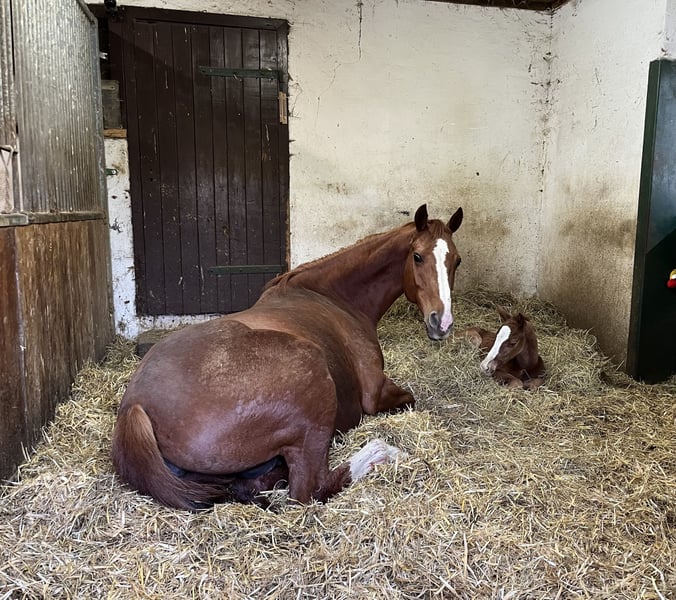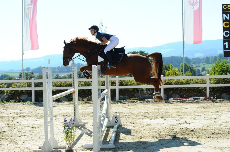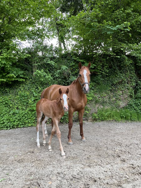 This stylish mare by Uriko x Caretino x Rebel Z is searching for her 100% soulmate. I personally trained her from the age of four, and she has competed up to 1.20 meters in show jumping. She is capable of performing all elementary dressage movements. Due to her strong ambition, she often appears tense and stressed during work in the arena. Her greatest passion is the outdoors. She loves hacking out and is very reliable in the field. She crosses any water, goes over bridges, and is familiar with all kinds of construction machinery, trucks, and agricultural equipment, always remaining calm and composed. She is easy to load alone, stands patiently at the blacksmith (currently being shod with hot shoes), and is accustomed to stable life. She has almost always been turned out full-time on pasture since she was a foal. She previously had a beautiful foal by Keaton, making her also interesting for breeding purposes. She is registered as a broodmare in Austria. Currently, she is ridden by a 12-year-old girl during riding lessons, where she tries her best but can sometimes become a bit wild. "Abby" lives with me on the farm. Unfortunately, we are two very different characters and just can't seem to connect. She deserves a person who appreciates her quite independent nature. It is ONLY the right environment and the right person that matter, not the price.