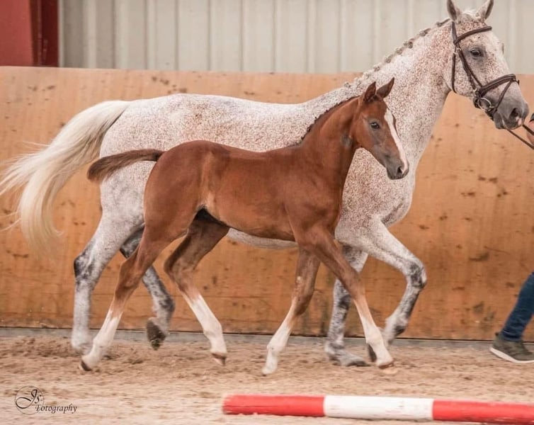 À vendre : Jument Holsteiner, née en 2010, d’un gris moucheté élégant, mesurant environ 165 cm Mr Blue par Creeol par Orthos