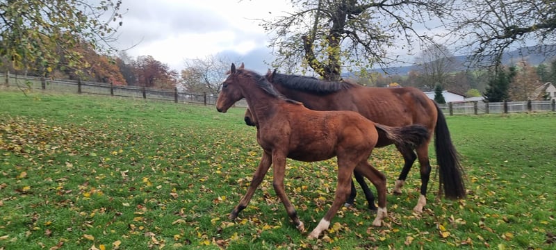 Holsteiner Stute, geboren 2025 – Eleganter Rotfuchs-Springreiterin Wir freuen uns, eine vielversprechende junge Holsteiner Stute, geboren im Jahr 2025, anzubieten. Sie besticht durch ihr auffälliges rotfuchsfarbenes Fell und ihr natürliches Talent im Springen. Diese gut gezogene Stute verbindet die klassische Holsteiner Konformation mit einem selbstbewussten und athletischen Springstil, was sie zu einer hervorragenden Perspektive für den Turniersport im Springreiten oder als zukünftiges Sportpferd macht. Ihr ausgeglichenes Gebäude und ihre korrekten Bewegungen spiegeln ihre hochwertige Abstammung wider, und sie zeigt bereits unter dem Sattel großes Potenzial. Trotz ihres jungen Alters hat sie bereits eine gute Ausbildung begonnen und eine willige Einstellung, sodass sie für einen erfahrenen Reiter geeignet ist, der eine talentierte Springpferde heranführen möchte. Diese Stute ist gut im Umgang, leicht zu handhaben und zeigt viel Versprechendes für eine erfolgreiche Karriere im Sport. Eine großartige Gelegenheit für alle, die nach einem zukünftigen Turnierstar suchen.