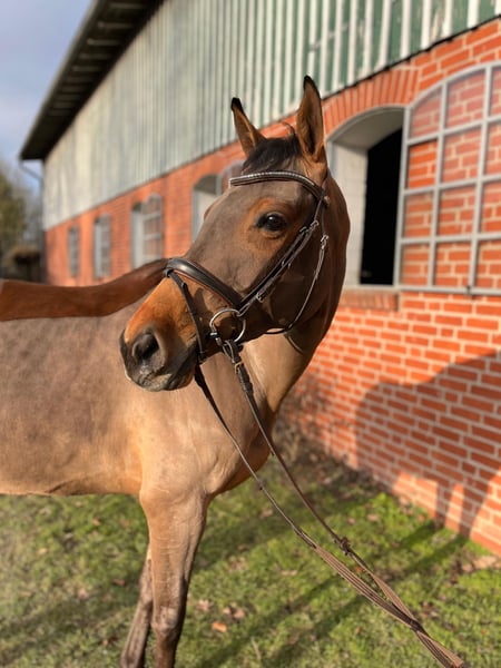 On behalf of the breeder, we are offering this promising Holsteiner half-blood mare by Cyrkon xx out of a Cassini II x Heraldik xx dam. She has only been under saddle for a few weeks but already impresses with three good basic gaits, solid free jumping, and her friendly and uncomplicated nature, both ridden and in handling. An excellent schooling horse suitable for amateurs and professionals alike. The mare already has successful siblings in sport. For more information and videos, please contact us via WhatsApp at 015161459663.