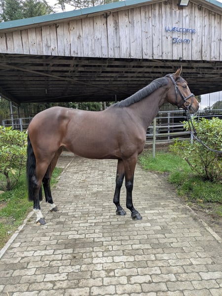 Sportlich ambitionierte Holsteiner Stute geb '21 abstammend von Conello x Cascadello I x Landgraf sucht ihren Menschen. Coco ist eine sensible, ehrgeizige Stute die sich sehr talentiert und vermögend am Sprung zeigt und 3 gute GGA besitzt. Sie kennt bereits erste Sprünge unter dem Reiter und auch kleine Geländesprüngen. Hierbei zeigt sie sich mutig und mit viel Freude. Sie ist auf Grund ihres Alters und Ausbildungsstands nicht als Anfängerpferd geeignet. Wir können uns Coco sehr gut in der Vielseitigkeit oder auch im Springen vorstellen. Röntgenbilder liegen vor. Die Stute kann in 29633 Munster gegen eine Gebühr von 30€ ausprobiert werden.