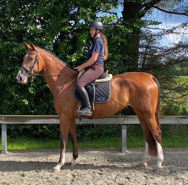 Verkaufe elegante Holsteiner Stute – ideal für Springreiter! Diese wunderschöne braune Holsteiner Stute wurde im Jahr 2021 geboren und beeindruckt durch ihre passende Größe von 170 cm. Mit ihrem kraftvollen Springtalent und ihrer ausgeglichenen Art ist sie bestens für den ambitionierten Reiter geeignet. Sie überzeugt durch ihre elegante Erscheinung, gute Beweglichkeit und Lernbereitschaft. Die Stute ist gesund, regelmäßig geimpft und wird aktuell sorgfältig ausgebildet. Bei Interesse oder für weitere Informationen stehe ich gerne zur Verfügung. Ein persönliches Kennenlernen ist jederzeit möglich! Holst Stamm 1859
