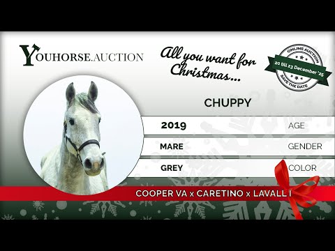 Chuppy ist eine interessant gezogene Stute mit viel Lockerheit und Elastizität in der Bewegung. Sie springt leicht, flüssig und mühelos, zeigt eine beeindruckende Hinterhandtechnik und ausreichend Sprungkraft. Sie verfügt über ein gutes Bewusstsein und eine natürliche Körperspannung, was sie zu einer modernen und vielseitigen Sportstute macht. Ihr Typ und ihre Springweise verleihen ihr großes Potenzial für den Sport sowie für die Zucht. Ihr Vater Cooper war bis 1,55 m erfolgreich im Turniersport und ist bekannt für seine athletischen Nachkommen mit ausgeglichenem Temperament. Ihre Mutter, eine Tochter von Caretino, hat bereits drei erfolgreiche Springpferde bis 1,40 m hervorgebracht. Die Großmutter ist die Mutter von Casall, dem legendären 1,60 m Grand Prix-Springpferd und einem der einflussreichsten Hengste im modernen Springreiten. Weiter in der Linie finden sich mehrere internationale Springpferde bis 1,60 m, was die Qualität und Stärke dieses Pedigrees unterstreicht. Chuppy stammt von einem der größten und renommiertesten Zuchtbetriebe für Sportpferde in Deutschland. Sie ist ungeritten und kennt nur eine Halfterführung. Bisher lebte sie ausschließlich auf der Weide, was ihr die Möglichkeit gab, richtig zu wachsen und Kraft in Körper und Beinen zu entwickeln. Eine ehrliche und reine Stute, die nun bereit ist, mit ihrer Ausbildung zu beginnen. Mit ihrem Typ, ihrer Bewegung, ihrem Springstil und ihrer außergewöhnlichen Blutlinie bietet Chuppy erhebliches Potenzial – sowohl als Sportpferd als auch als zukünftige Zuchtstute.