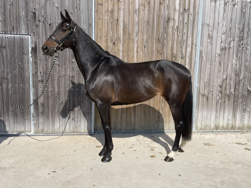 Larantzau is a beautiful 8-year-old Holsteiner mare. She impresses every day with her extremely friendly temperament and her strong focus on people. She has competed in show jumping competitions in France up to 1.30 m and demonstrates great potential and ability over fences. She is very careful at jumps and has plenty of blood. Initially, she may be a bit unsure over fences, so she requires an experienced rider who can build her confidence. In dressage work, she is very easy and pleasant to ride. She also enjoys hacking out in the forest. Larantzau could be the perfect partner for an experienced show jumper or a high-quality recreational horse for an amateur. Her pedigree is also very suitable for breeding. Larantzau is correctly vaccinated, regularly dewormed, seen by the farrier and dentist, well-behaved during transport (trailer, van, truck), and calm during grooming.