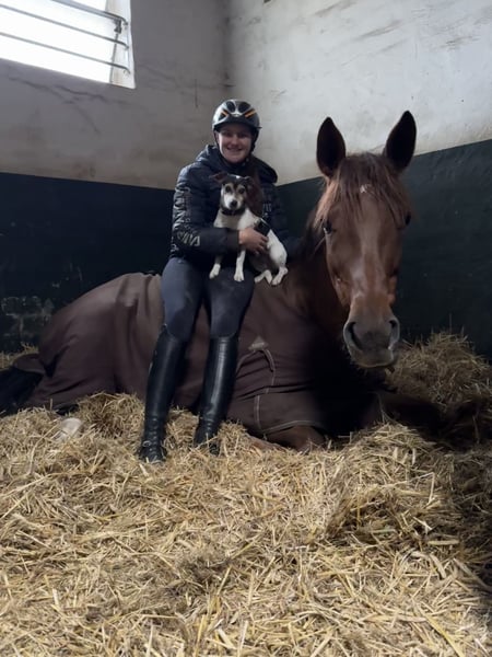 Kacy è una cavalla di otto anni con molte qualità. Il suo principale punto di forza è sicuramente il salto ostacoli. A causa della sua personalità molto sensibile ma anche forte, ha bisogno di una mano guida e di confini chiari, il che non la rende necessariamente un cavallo da bambini. È stata montata con delicatezza, ma ha avuto bisogno di un tempo piuttosto lungo per rilassarsi con il cavaliere. Nel frattempo, abbiamo stabilito le nostre routine e non abbiamo più problemi. Nel salto ostacoli è energica e cauta, a volte ancora un po' curiosa. A casa possiamo affrontare un percorso di salto di livello L, mentre in gara è stata piazzata fino al livello L, ma non ha partecipato a molte competizioni. Quindi, se stai cercando un partner per il salto ostacoli di alto livello, hai esperienza con cavalli giovani e sei disposto a continuare a educare un cavallo con calma, Kacy potrebbe fare al caso tuo. Sarò felice di raccontarti di più se sei interessato. +4915233658660