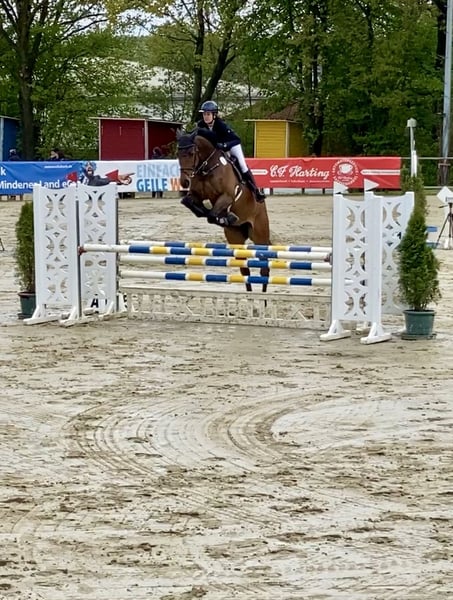 Te koop is een 8-jarige merrie van Clarimo x Cambridge. Holsteiner stam 8901. Ze is momenteel drachtig van Cornet Obolensky. De verwachte veulendatum is medio juni 26. De merrie is tot en met M springen voorgesteld en heeft plaatsingen tot L-springen. Vanwege een blessure (geen sportblessure) is ze vorig jaar niet meer op wedstrijden voorgesteld. Na het veulenen kan ze zeker weer bereden worden. Röntgenfoto's zijn beschikbaar. De merrie beschikt over een geweldige rijdbaarheid en een enorm springvermogen met een goede instelling. Ze toont zich altijd zelfverzekerd en ontspannen - ideaal ook voor fokkers die waarde hechten aan een evenwichtig karakter. In de omgang is ze zeer eenvoudig, met kinderen, bij het laden of op wedstrijd, ze is gewoon een betrouwbare partner. Voor meer informatie graag telefonisch! De merrie kan in overleg worden bezichtigd.