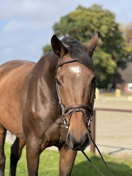 For sale is an 8-year-old mare by Clarimo x Cambridge. Holsteiner lineage 8901. She is currently in foal to Cornet Obolensky. The expected foaling date is mid-June 26. The mare has competed up to show jumping M and has been placed in L-jumping. Due to an injury (not a sports injury), she was not shown at competitions last year. After foaling, she could definitely be ridden again. X-rays are available. The mare has excellent rideability and an enormous jumping ability with a good attitude. She always presents herself confidently and calmly – ideal for breeders who value a balanced temperament. She is very uncomplicated to handle, with children, during loading, or at competitions; she is simply a reliable partner. For more details, please feel free to call! The mare can be viewed by appointment.