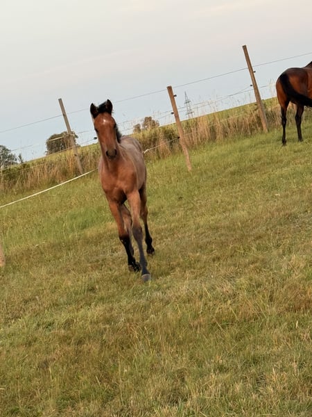 United Zayana G (Ulla) ist ein typstarkes, prämiertes Holsteiner Stutfohlen (geb. 05.04.2025) mit exzellenter Abstammung und viel Qualität für den zukünftigen Sport. Sie überzeugt mit einem sehr guten Gleichgewicht, korrektem Fundament und einer modernen, sportlichen Aufmachung. Von erfahrenen Züchtern wurde sie als besonders schick und absolut gelungen beschrieben – ein Fohlen, das auf den ersten Blick begeistert. Vater United Pleasure (v. United Way) steht für Leistungsbereitschaft, Rittigkeit und Vermögen – Eigenschaften, die Ulla bereits jetzt zeigt. Über die Mutter Cleariestown xx (v. Mahler xx) bringt sie zusätzlich Blutanschluss, Leichtfüßigkeit und ein ideales Exterieur für den modernen Springsport mit. Im täglichen Umgang zeigt sie sich äußerst menschenbezogen, neugierig und mutig. Sie kennt das Führen, Schmied, Hunde und das Gelände. Ein Fohlen mit viel Ausstrahlung und Perspektive – sowohl für den Sport als auch für die Zucht.