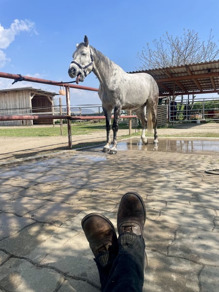 Cosmo is a friendly and well-mannered 12-year-old gelding. Whether it's dressage, jumping, trail riding with or without a saddle, he handles everything with ease. We have ridden him in a Western saddle, and he is also accustomed to being ridden on a long rein. Cosmo has also participated in private lessons with children aged 9 to 14. He is forgiving of mistakes and always strives to do his best. Due to an upcoming surgery on my part and the lack of time from the owner (my husband), we are now looking for a loving home where he can be appreciated as a versatile leisure horse. He is familiar with a stable but has felt very comfortable in our open stable environment. He still enjoys playing and is generally easy to handle. He is sociable and of medium rank in the herd. Grooming, vet visits, farrier work, and bathing are always handled properly. His teeth were checked at the end of 2025. Vaccinations are up to date and recorded. A pre-purchase exam can of course be arranged. If you're interested or have further questions, please feel free to contact us. Platz vor Preis!