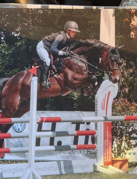 Offered is a 12-year-old Holsteiner gelding with a lot of gallop and caution over jumps. He has been placed up to L-level show jumping and has been presented little due to time constraints. He is very cooperative and wants to do everything right, but I would not consider him a pure beginner's horse due to his significant scope and drive to jump. He goes out alone and in groups calmly into the countryside and is both farrier-friendly and loading-friendly. Test riding is possible for a fee of €50, which will of course be deducted from the purchase price. Please direct inquiries via phone or WhatsApp to 016095080190.