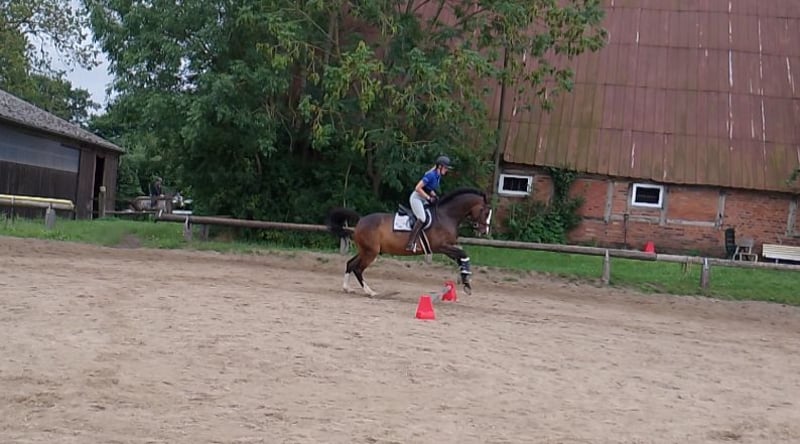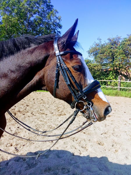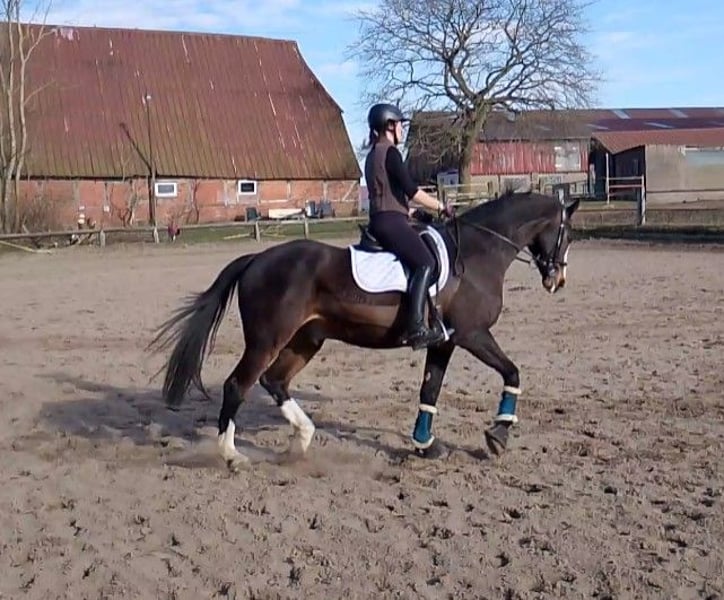 Zum Verkauf steht ein 16-jähriger Holsteiner Wallach mit einem Stockmaß von 169 cm. Der hübsche Braune überzeugt nicht nur durch seine Ausstrahlung, sondern vor allem durch seine feine Art und Rittigkeit. Er ist ein sensibles Pferd, das eine feste Bezugsperson braucht und bei entsprechendem Vertrauen sein volles Potenzial zeigt. Daher wünsche ich mir für ihn einen einfühlsamen Reiter, der Freude an der täglichen Arbeit mit einem fein reagierenden Pferd hat. Caveman ist kein Gewichtsträger, weshalb das Reitergewicht bei maximal 70 kg liegen sollte. Unter dem Sattel zeigt er sich gut ausgebildet und läuft zuhause sicher Lektionen bis Klasse L - im täglichen Training. Zudem ist er mit der Arbeit an der Doppellonge vertraut. Turniererfahrung ist vorhanden, wodurch er auch für ambitionierte Freizeitreiter interessant ist, die ein bereits gefördertes Pferd suchen. Sein ideales Zuhause findet er bei einem gehobenen Freizeitreiter, der Wert auf feines Reiten und eine harmonische Partnerschaft legt. Bei ernsthaftem Interesse freue ich mich über eine Nachricht und ein persönliches Kennenlernen ☺️