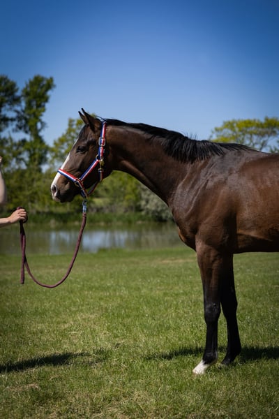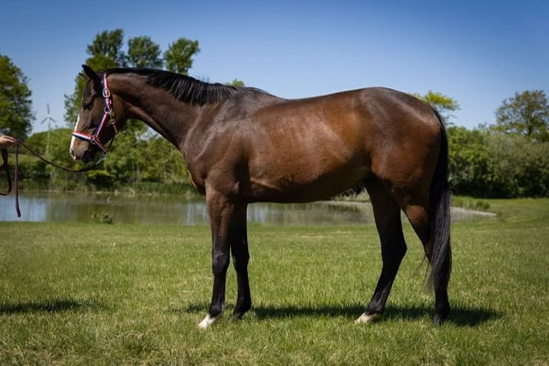 Zum Verkauf steht ein vielversprechender Holsteiner Wallach, geboren im Jahr 2022. Dieser elegante Braune hat ein Stockmaß von 1,65 cm und überzeugt durch sein sportliches Erscheinungsbild , ist aktuell angeritten .Er ist momentahn hinten sehr überbaut, wird also noch wachsen, er geht in der Halle Schritt, Trab, Galopp außen herum und kennt Gas und Bremse, er ist nicht aus der Ruhe zu bringen.