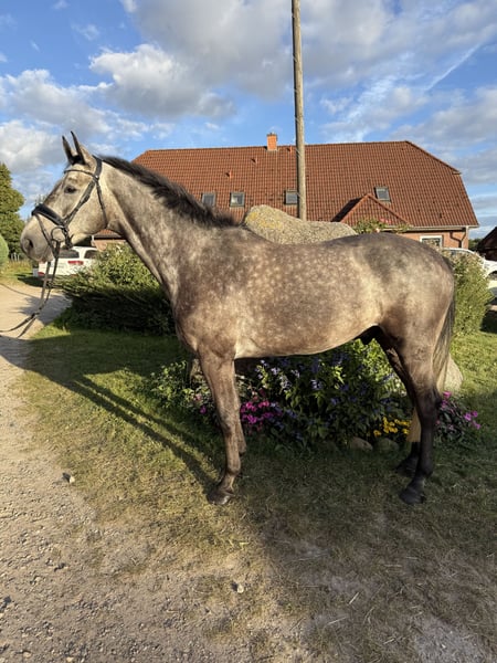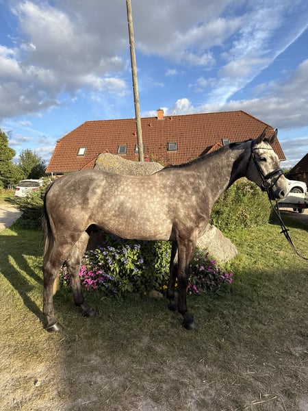 We are looking for a new home for our talented Holsteiner gelding! This promising young gelding already shows great potential in jumping and impresses with his ambitious and friendly nature. He is well-mannered, easy to handle, and has a balanced character. Colidero convinces with his versatility. He shows courage and is always motivated, both in the arena and at the first cross-country obstacles. Despite his age, he can be ridden easily by teenagers and is already familiar with trail rides, open fields, and bathing, both alone and in a group. He is suitable for both the ambitious rider and for leisure riding. We can also imagine Carsten as a hunter. A half-sister is already a successful hunter in the USA. PK 20-30t If you are interested or would like more information, we look forward to your message!
