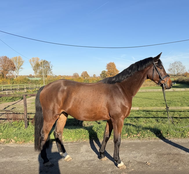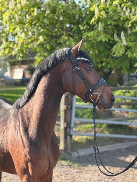 Zum Verkauf steht ein vielversprechender Holsteiner Wallach, geboren im Jahr 2021. Er wurde von uns Mitte 2025 schonend angeritten. Dieser junge Sportler überzeugt durch seine Bewegungsfreude und Lernbereitschaft. C’est moi ist immer motiviert und freundlich. Er zeigt sich im Umgang und beim reiten bisher unkompliziert und brav. Er ist angeritten und macht schon kleine Sprünge unterm Reiter, die Videos werden gerne auf Anfrage versendet. Sein sportliches Erscheinungsbild und seine Grundgangarten, sowie seine Springmanier machen ihn zu einem idealen Partner für ambitionierte Reiter in der Dressur und im Springen. Der junge Mann wurde bei uns geboren und wird daher direkt vom Züchter verkauft. Aktuelle Röntgenaufnahmen von den Beinen sind vorhanden und ohne Befund. Wir freuen uns auf Ihre Anfrage!