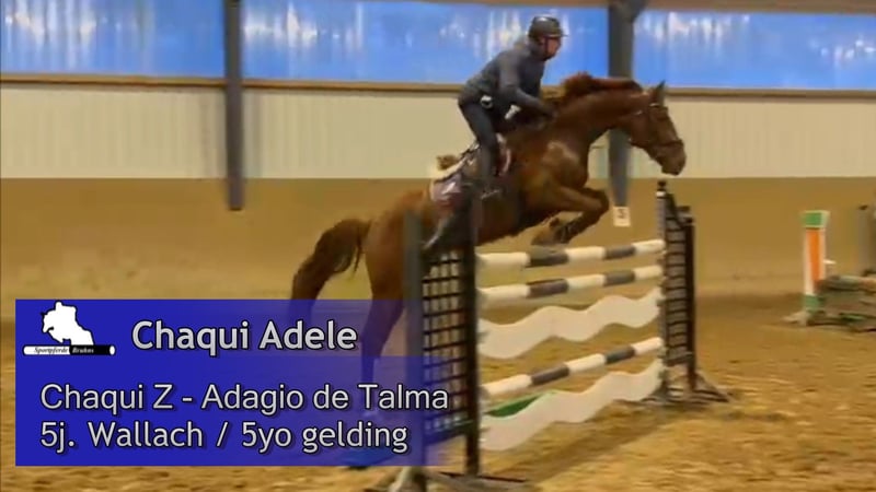 Sport Horses Bruhns: 0(049) 173 / 75 82 768, www.sportpferde-bruhns.de, email: sportpferde.bruhns@aol.com Chaqui Adele, 5-year-old gelding by Chaqui Z out of Adagio de Talma, show jumping horse with placements up to 1.00 m level