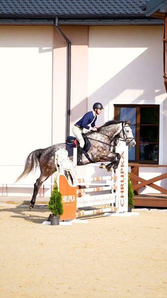 Crunchips – wałach urodzony 17.04.2020 (po Cassini II / Capitol I – z matki po For Pleasure) Crunchips to 5-letni wałach o nowoczesnym typie, doskonałej prezencji i znakomitym pochodzeniu. Wzrost – 166 cm. Koń o bardzo dobrym ruchu, świetnej głowie i zrównoważonym temperamencie. Jest ambitny, chętny do pracy i przy tym łatwy w prowadzeniu, co czyni go niezwykle przyjemnym partnerem dla jeźdźca. Aktualnie startuje w konkursach młodych koni i małej rundy, uzyskując bardzo dobre wyniki. Znajduje się w regularnym treningu i jest przygotowany do konkursów dla koni 6-letnich. Pochodzenie: • Ojciec – Cassini II (syn legendarnego Capitol I) – ogier, który zapisał się w hodowli jako producent koni o ogromnej sile skoku, wybitnej technice i sportowym charakterze. • Matka po For Pleasure – jednym z najbardziej utytułowanych ogierów w historii skoków przez przeszkody, znanym z przekazywania potomkom waleczności, refleksu i doskonałej jezdności. Crunchips to koń o dużym potencjale sportowym, predysponowany do konkursów wyższej rangi. Dzięki swojemu charakterowi i jezdności będzie idealnym wyborem zarówno dla zdolnego juniora, ambitnego amatora, jak i profesjonalnego zawodnika szukającego konia z przyszłością. Z pełnym przekonaniem polecam – koń gotowy do dalszego rozwoju i sportowych sukcesów. Zainteresowanym chętnie prześlę filmy ze startów – kontakt przez WhatsApp.