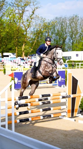 Crunchips is a 5-year-old (born 17.04.2020) gelding by the stallion Cassini II / Capitol I, out of a mare by the stallion For Pleasure. He has very good movement and a great temperament. Height: 166 cm. He is currently competing in the small tour (110–115 cm) with very good results. Prepared for competitions for 5-year-old horses, he is in regular training, balanced, ambitious, and easy to ride. Sire – Cassini II, son of the legendary Capitol I, known for producing horses with great jumping power and excellent technique. Dam by For Pleasure – one of the most decorated stallions in the history of show jumping. Crunchips is a horse with the potential for high-level sport – he combines outstanding pedigree, modern type, and excellent jumping abilities. Ideal for a talented junior, an ambitious amateur, or a professional looking for a future horse. Highly recommended!