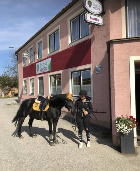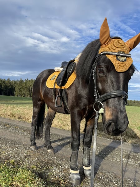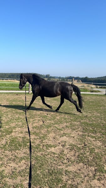 Zum Verkauf steht eine, 2015 geborene (10 Jahre), Rappstute. Dakota ist eine Araber-Huzulen Mix Stute, 150cm groß und deckt gut die meisten Reitergrößen ab. Sie ist sehr lernwillig und neugierig, und achtet immer darauf, alles richtig zu machen. Bei der Bodenarbeit ist sie sehr konzentriert und tritt ihrem Gegenüber immer respektvoll entgegen. Zudem wird sie frei gearbeitet, was ihr sehr viel Freude bereitet. Sie kennt alle drei Gangarten, beim Ausreiten sowie am Platz. Zudem springt sie auch gerne. Sie ist jedoch kein Anfängerpferd, da sie erst viel Vertrauen zu ihrem Menschen aufbauen muss. Wenn sie dieses Vetrauen hat, kann man jeden Spaß mit ihr machen. Zudem hat Koko sehr viel Go, was man aber gut händeln kann. Dakoto ist sehr sensibel, wesshalb sie einen Menschen braucht, der ruhig, geduldig und erfahren ist. Koko geht Barhuf und steht im Offenstall. Sie ist nicht für den Schulbetrieb geeignet. Bei ernsthaftem Interesse gerne melden.