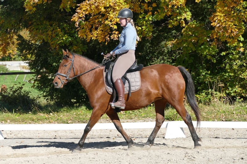 Huzule prämierte Zuchtstute - Leistungsgeprüft! 6j Braunfalbe Stm. 148cm. , große, kräftige Stute mit bester Abstammung, ausgeglichenem Charakter, guten GGA und sehr guter Ausbildung - Dressur KL L, Springen Kl A; geritten und gefahren, sicher und unerschrocken im Gelände- auch alleine; Wanderritte absolviert, Turniererfahrung Huzulenpfad, VS, Schulbetriebserfahrung auch mit Kindern, auch perfektes Logepferd, sehr willug, aufmerksam und gelassen bei der Arbeit, sehr brav und gelassen im Umgang; auch als Gewichtsträger und für Therapie geeignet, auch für Wiedereinsteiger ideal. Ein Rundum ideales Pferd für alle Spaten ! schmiede u verladefromm, für Offenstall geeignet, in der Herde verträglich.