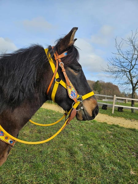 Freizeitstute – brav & zuverlässig BRITTA ein kräftiges Kleinpferd Alter: 6 Jahre Stockmaß: ca. 1,46 Preis: 5900,- mit Zubehör 6800.- AKU: vorhanden ✨ Beschreibung: Diese tolle Stute überzeugt durch ihr ausgeglichenes, freundliches Wesen und ihre ruhige Art. Im täglichen Umgang zeigt sie sich brav, menschenbezogen und unkompliziert. Putzen, Führen sowie der allgemeine Stallalltag sind problemlos und angenehm. Unter dem Sattel ist sie rittig und vermittelt ein gutes Reitgefühl. Besonders im Gelände zeigt sie sich gelassen und zuverlässig. Sie geht entspannt ins Gelände, auch für längere Ausritte gut geeignet. Auf dem Reitplatz arbeitet sie motiviert. Durch ihre angenehme Art ist sie eine ideale Partnerin für den Freizeitbereich. 🐎 Geeignet für: Freizeitreiterinnen und Freizeitreiter, die eine brave, geländesichere Stute suchen. Auch passend für entspannte Ausritte, leichte Platzarbeit und Wiedereinsteiger, die Wert auf ein ehrliches Pferd legen. 🩺 Unsere Pferde werden regelmäßig: – entwurmt – vom Schmied betreut – osteopathisch kontrolliert 🛍 Hofladen: Westernsättel, Trensen & Zubehör 🚛 Transport und Equipment auf Wunsch günstig organisierbar Unser Service: ✅ 3 Monate Umtauschrecht ✅ Proberitt: 35 €, jedes weitere Pferd 25 € (beim Kauf am selben Tag angerechnet) ✅ 100 € Sofort-Rabatt bei Abholung oder Transport am gleichen Tag ✅ Persönliche & ehrliche Beratung 📞 Anfragen bitte ausschließlich telefonisch: 0171 – 4001968 🕗 Erreichbar täglich von 8–20 Uhr ⚠️ Keine E-Mail oder WhatsApp ⚠️ Alle Angaben ohne Gewäh