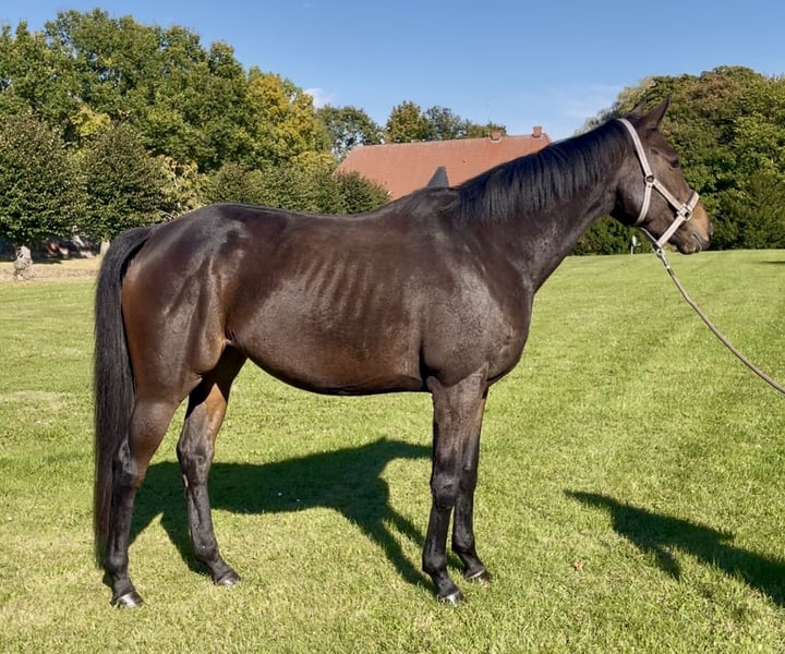 Verkaufen unsere 4 jährige irische Vollblut Stute. Motte ist ca 159cm groß Sie ist seit kurzem unter dem Sattel und meistert die bisherigen Aufgaben alle mit Bravour! Hat sogar schon die ersten Sprünge unter dem Sattel gemacht und zeigt sich dabei sehr ausgeglichen, deswegen können wir sie uns gut im Hunter Bereich vorstellen. Vollständig Influenza grundimmunisiert und entwurmt. Sie besticht durch ihr charmantes Auftreten. Bisher ist noch kein TÜV vorhanden, kann aber jederzeit auf Kosten des Käufers gemacht werden. Aufgrund ihres Ausbildungsstandes bisher noch kein Anfängerpferd, daher Probereiten auch nur durch Jungpferdeerprobte Reiter möglich! Preis steigt mit weiterer Ausbildung Probereiten berechnen wir mit 20€ Alles Weitere ausschließlich Telefonisch! (Falls ich nicht ans Telefon gehe, gern eine Nachricht auf dem Anrufbeantworter hinterlassen- rufe sobald ich Zeit habe zurück!!) Larissa Bever 015756176969