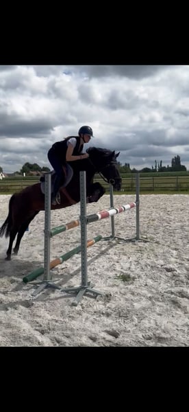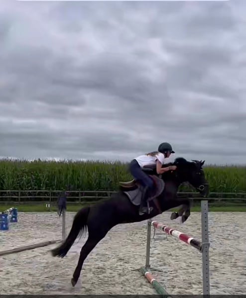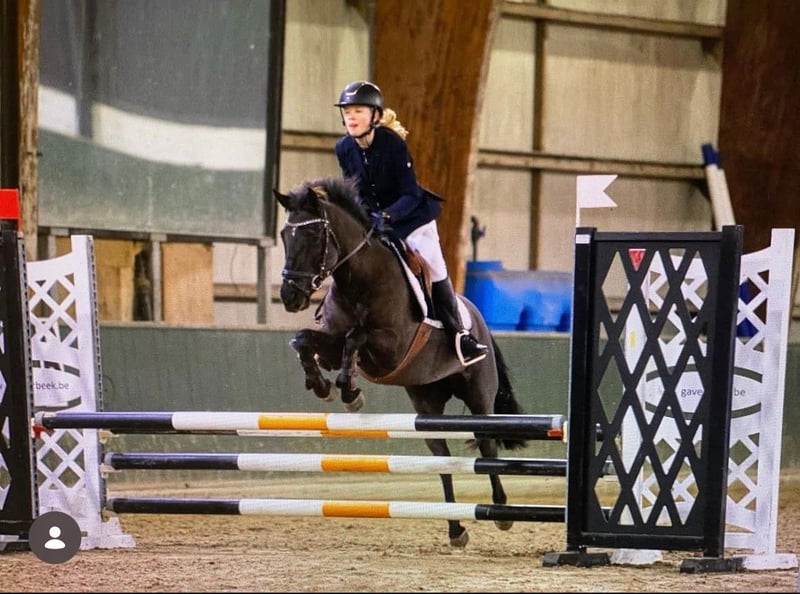 Met pijn in ons hart verkoopt mijn dochter haar D-pony Tiara Silogue van 2015 wegens te klein geworden voor een 15 jarige puber. Afkomstig uit Ierland, schoft 1,41m . Ze is een sportpony en super bomproof. Tiara is heel lief, houdt van aandacht en is braaf met kindjes. Ze werkt graag en leert snel nieuwe dingen. Ze heeft al heel veel ervaring en heeft wedstrijden meegedaan. Zowel jumping als eventing. Buitenrijden doet ze super graag: galopperen in de bossen vindt ze zalig, op het strand kan je met losse teugel galopperen en crossen doet ze altijd met de oren naar voren. Springen doet ze ook graag. Ideaal voor kinderen vanaf 8 jaar mits ervaring. Ze kan met andere paarden staan. Tiara is het gewoon buiten te staan alsook op stal. Ze staat in de regio Astene, Deinze. Voor meer info of foto’s mag je altijd sturen of bellen op +32 475 311 511 Hopelijk vinden we een gouden thuis voor deze topper.